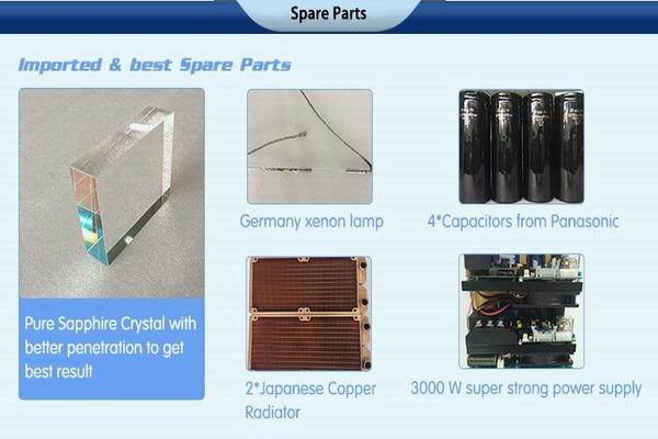 Pure sapphire crystal ultilized in the device to let the light illuminate skin well to get best result; Germany imported customized medical handle pipe, more professional, more durable.